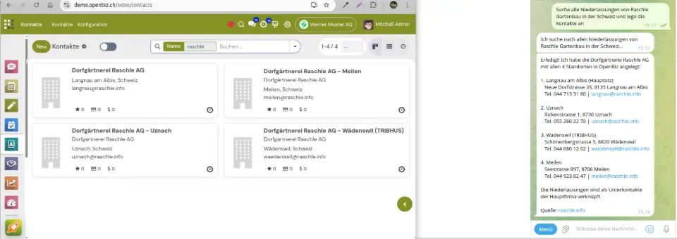 Der Agent holt sich Informationen aus dem Internet und legt damit Datensätz in OpenBiz an. Die Vorgänge sind unter dem Agenten Bot geloggt und nachvollziehbar.